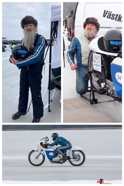 racing his classic Triumph on ice at the 2024 speed weekend in Sweden. The bike is fitted with a Micro Power twin kit (part number KIT00281) and averaged 190kph. Click here for the YouTube video